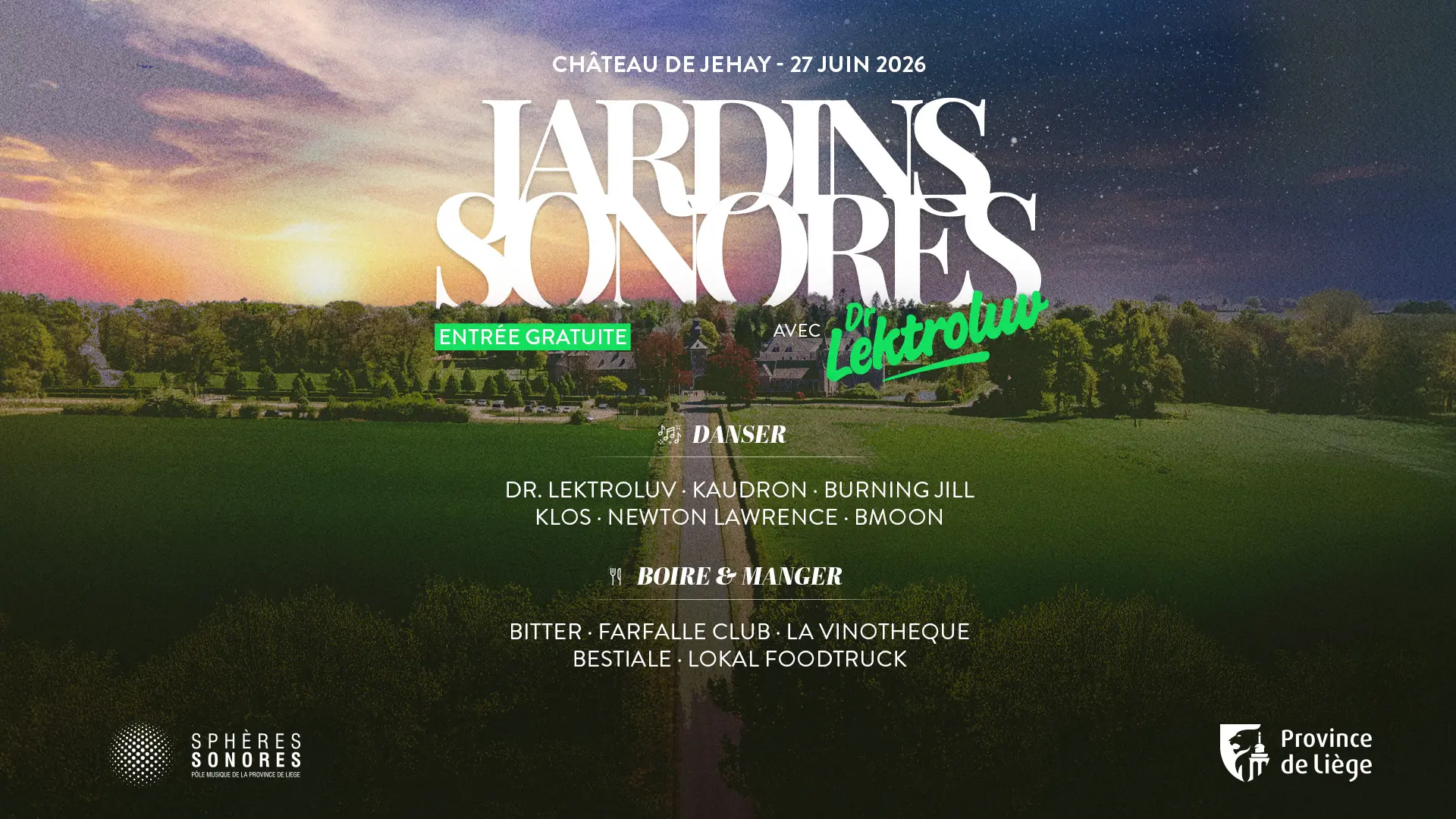 De 15h à minuit, Sphères Sonores, le pôle musical de la Province de Liège, vous invite à une journée unique mêlant nature, musique électronique et plaisirs épicuriens, en présence de DJ’s et de drink & foodtrucks de la région.