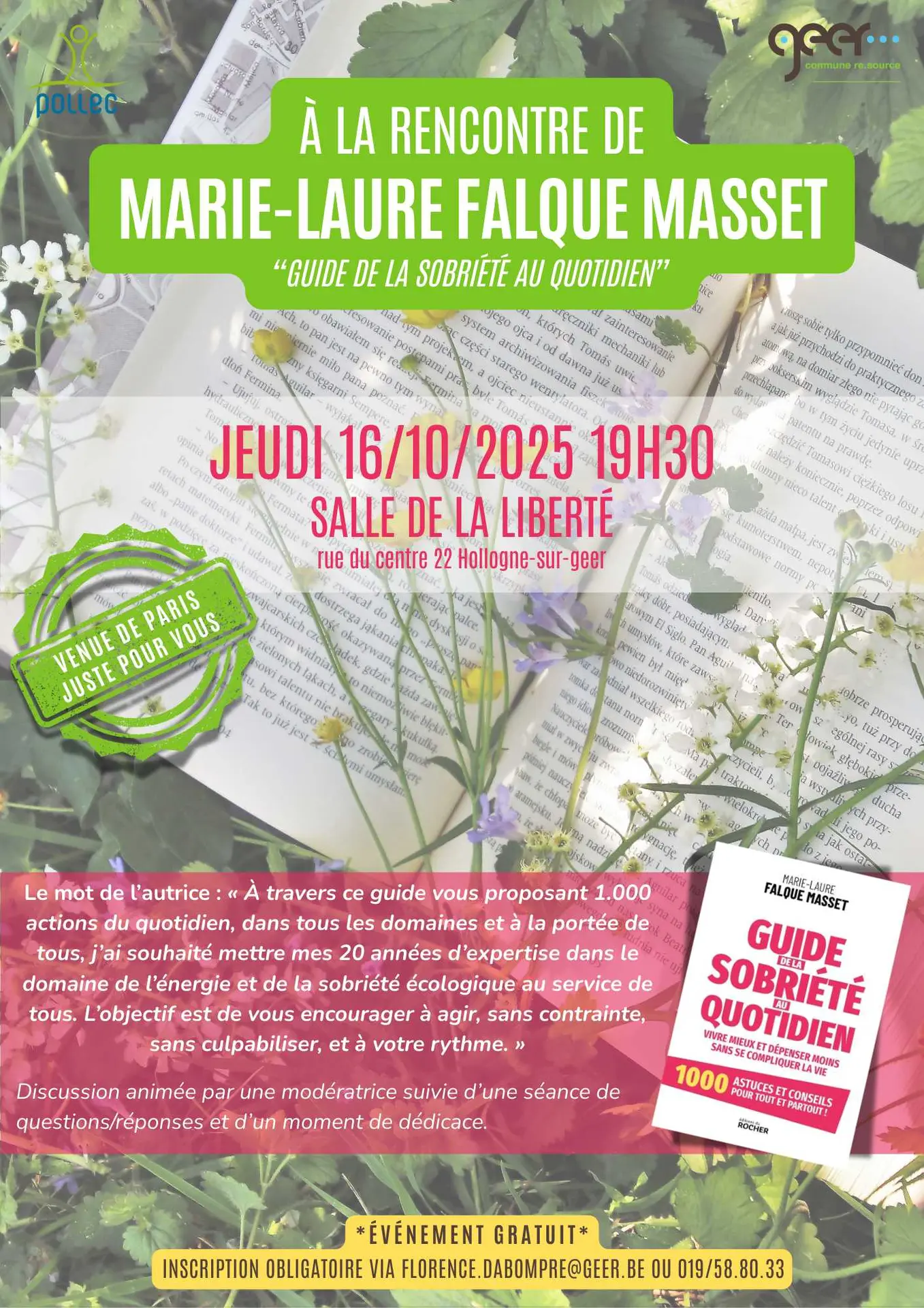 Venez à la rencontre de Marie-Laure Falque Masset et découvrez son "Guide de la sobriété au quotidien".
