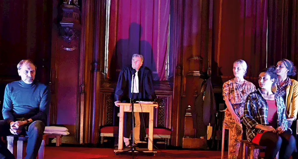 Sur scène, cinq interprètes campent les figures qui jalonnent ce parcours judiciaire : la victime, l’agresseur, l’entourage de la victime, les associations qui accompagnent les victimes et les institutions judiciaires et policières.